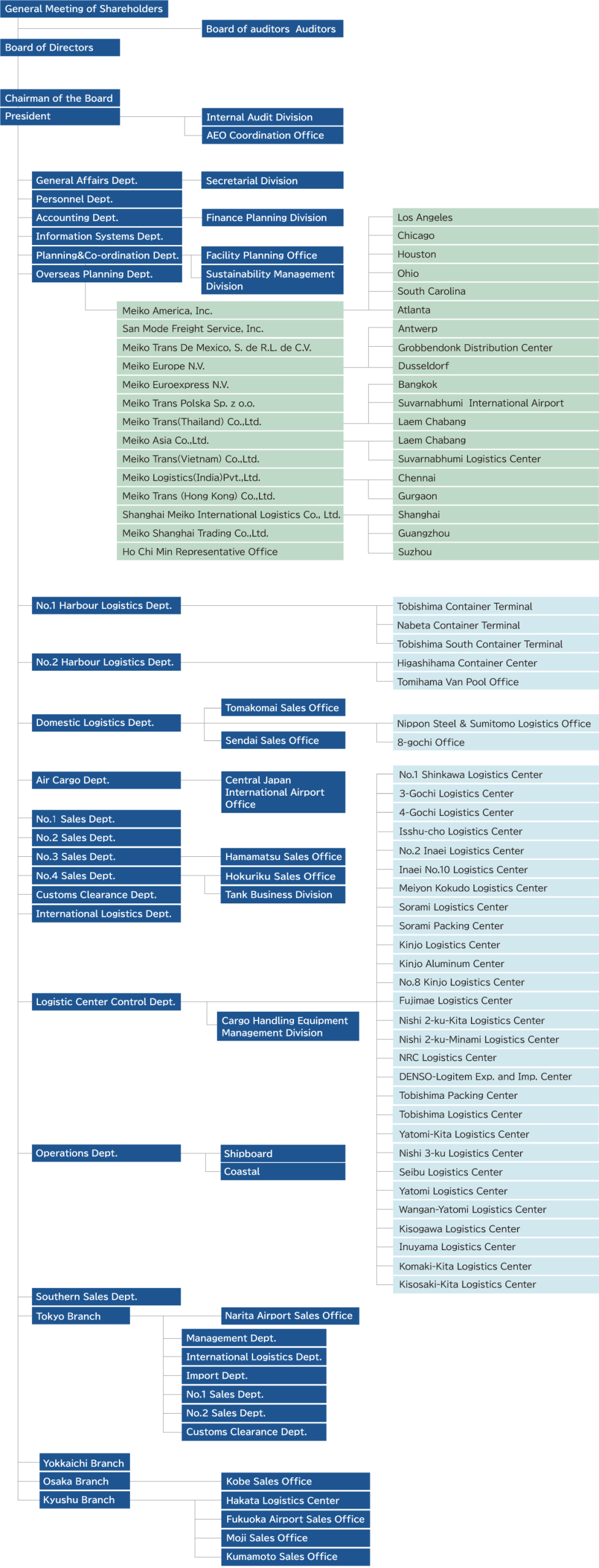 Major Shareholders (Top 10)Meiji Yasuda Life Insurance Company, Mitsui O.S.K. Lines, Ltd., The Bank of Nagoya, Ltd., Aichi Bank, Ltd., NIPPON ACTIVE VALUE FUND PLC, NGK Insulators, Ltd., Meiko Trans Employee Shareholding Association, Noritake Co., Limited, The Aichi Bank, Ltd., Mitsui Sumitomo Insurance Co., Ltd., Taisei Corporation